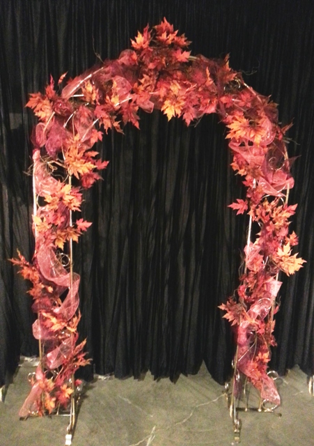 Brass arch with fall décor, rents for $95.00 (undecorated)