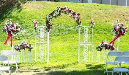 Black Iron Arch has elegant designs in iron to decorate any yard or indoor wedding. Rents for $125.00 (undecorated)