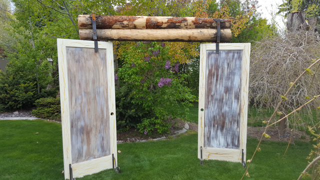 Vintage doors with wood top section to create an entry to the aisle or at sign in table for entry to reception. Can also be used as a backdrop archway.