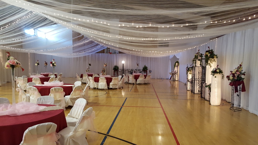 Photo of a wedding we did with the full ceiling and wall treatment with Sa-Sys Elegant Settings by Pilar.